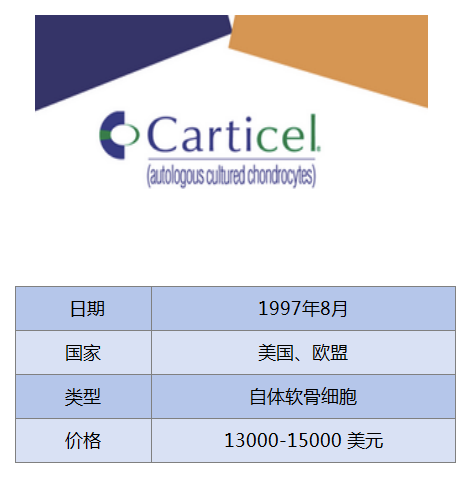 1997 年,Genzyme 公司(Vericel 前身)的 Carticel 获批用于临床,这也是美国 FDA 批准的第一款细胞疗法。