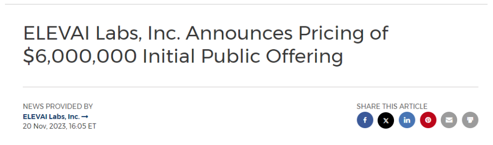 2024-01-15近日,美国医学美容生物技术公司ELEVAI LABS(下文简称“ELEVAI”)完成首次IPO。以每股4美元的价格发行了150万股股票,并成功募得600万美元的资金。根据该发行价格计算,ELEVAI目前的市值达到了6900万美元(超4.9亿元人民币)。... -